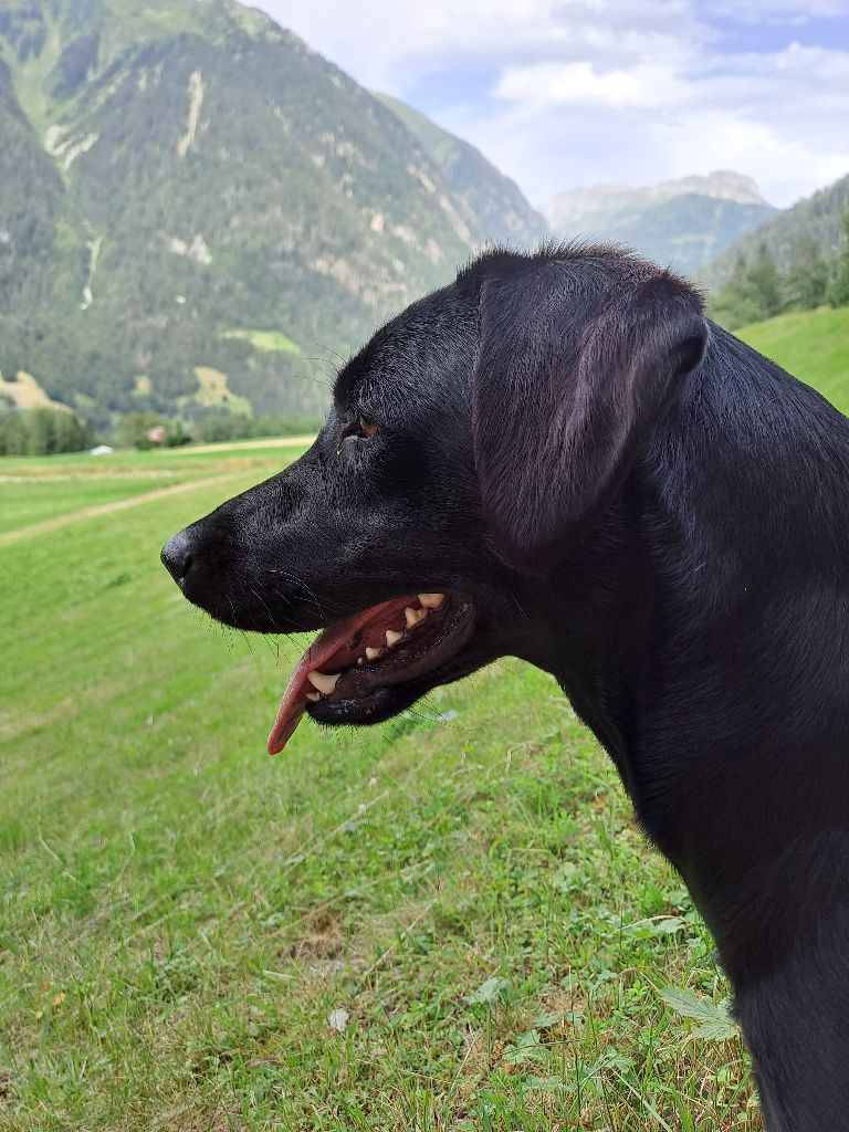 Spirou est une chienne de type sportif (lignée dite de travail), ce sont des Labrodors fins avec beaucoup de vivacité et d'endurance.